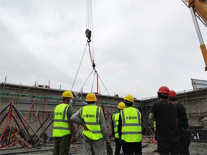 6.为确保.涟源加油站球形网架安装顺利,应有详细的涟源施工组织设计。网架安装必须保证结构的稳定性和不产生的附加变形。